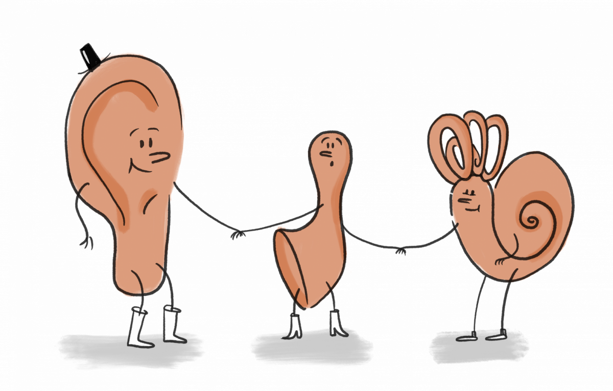 Das menschliche Ohr besteht aus der Ohrmuschel, dem äusseren Gehörgang, dem Trommelfell und