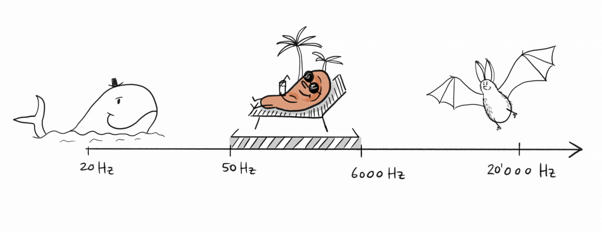 Der Hörbereich ist abhängig vom Alter und für jede Person anders. Die höchste Empfindlichkeit beim menschlichen Ohr liegt im Bereich von ca. 500 Hz bis 6.000 Hz. Frequenzen in diesem Bereich werden vom menschlichen Gehör überdurchschnittlich und besser wahrgenommen als Frequenzen, die ausserhalb dieses Bereiches liegen.