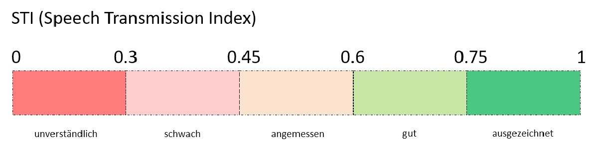 STI -> Speech Transmission Index (Verständlichkeitsgrad)